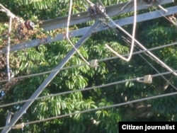 Nos reportan que hace algunos días estuvieron más de treinta y cinco viviendas sin fluido eléctrico por un intervalo de diez horas por un corte circuito generado por cables enrollados en los árboles, en la Calle Lebredo entre Apodaca y Santa María afectando parte de las viviendas de Apodaca entre Cadena y Lebredo, en el municipio de Guanabacoa. Esta es la imagen de los cables que tardaron casi un día en reparar.